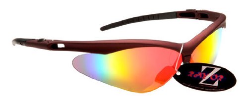 List Price: £12.49 RayZor Professional Lightweight UV400 Dark Red Sports Wrap Running Sunglasses, With a Wind Shield Red / Black Iridium Revo Anti-Glare Lens Description & Features